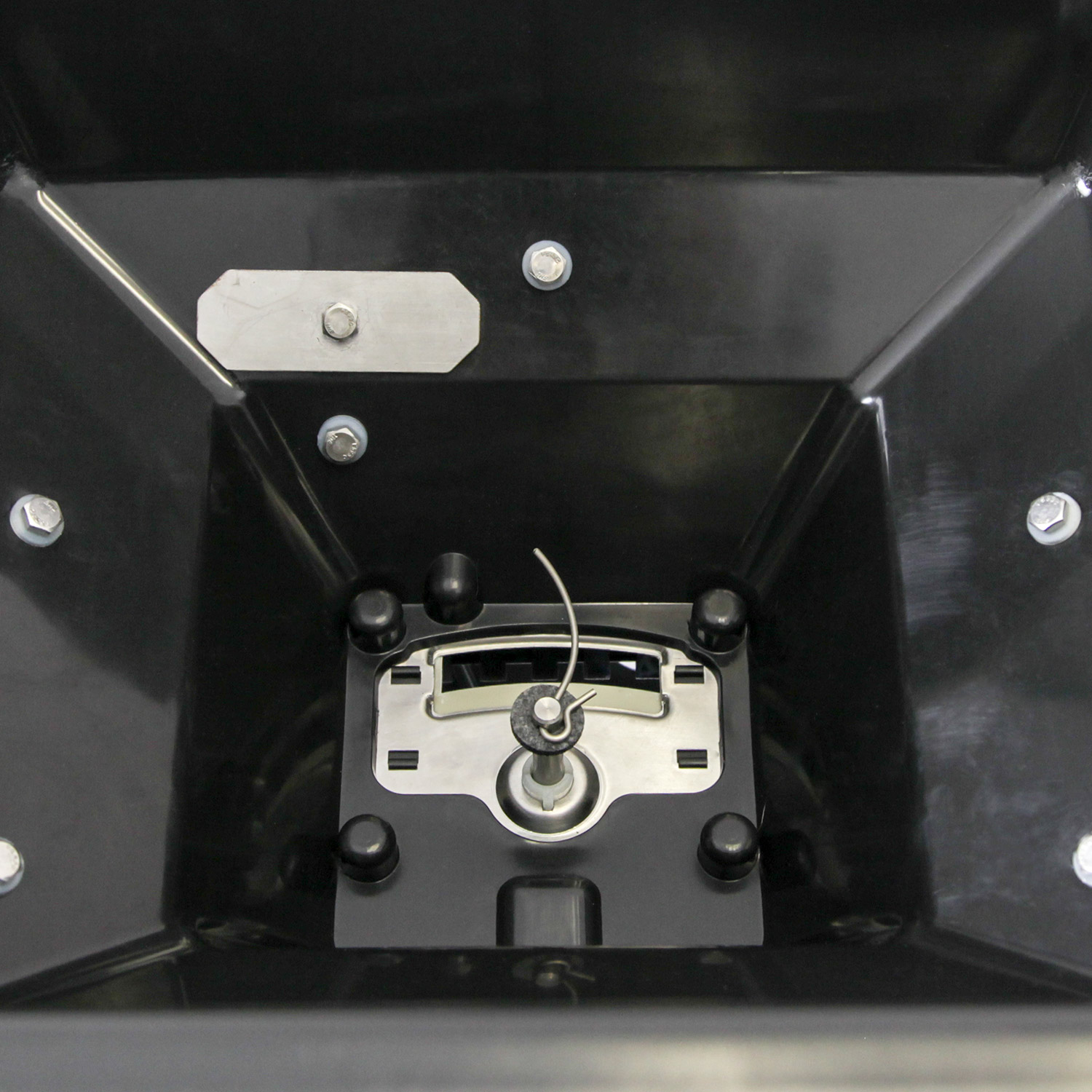 Hopper large enough to hold regular bag of fertilizer.