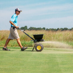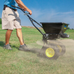 The 50-lb. capacity Spyker ERGO-Proâ„¢ Walk-Behind Broadcast Spreader is perfect for spreading seed, fertilizer, ice melt and more. An innovative hopper design virtually eliminates bridging, allowing material to flow to empty with no shaking or bouncing required. The ergonomic, adjustable handle design is made to better match the operator, helping reduce user fatigue so you can get the job done in an easy, timely fashion.