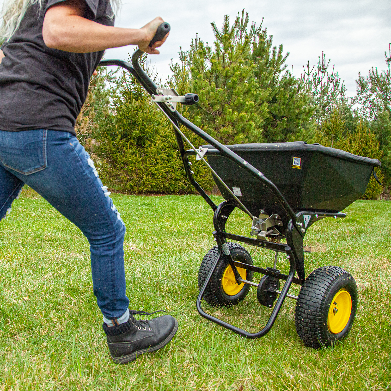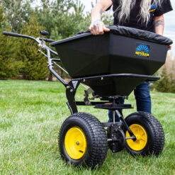 The 80-lb. capacity Spyker ERGO-Pro™ Walk-Behind Broadcast Spreader is perfect for spreading seed, fertilizer, ice melt and more. An innovative hopper design virtually eliminates bridging, allowing material to flow to empty with no shaking or bouncing required. The ergonomic, adjustable handle design is made to better match the operator, helping reduce user fatigue so you can get the job done in an easy, timely fashion.