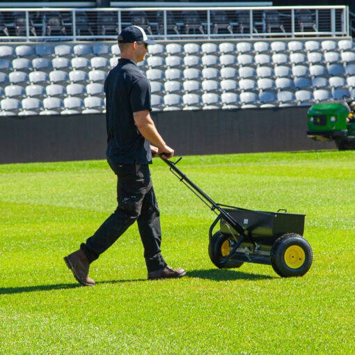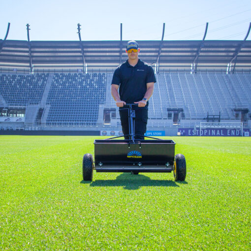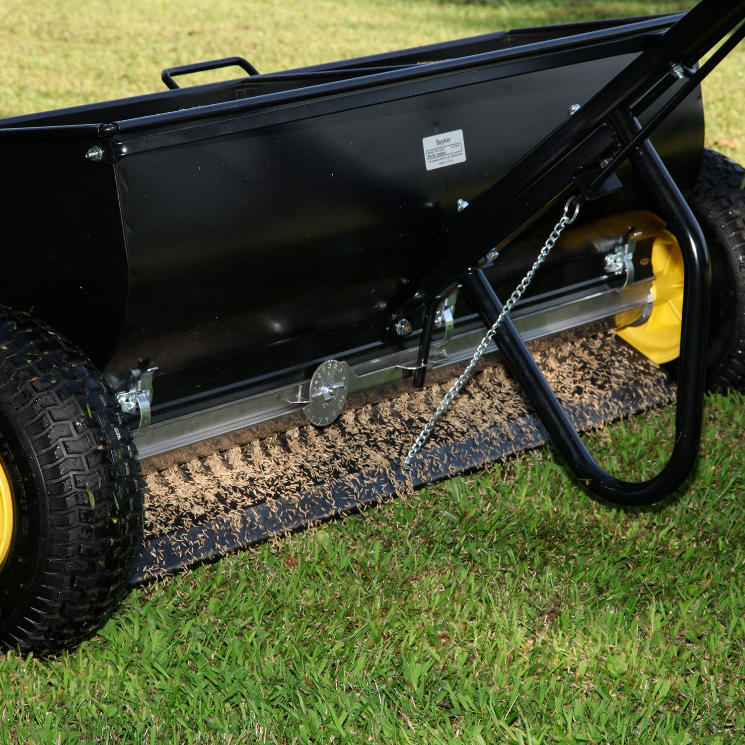 The 36” commercial drop spreader from Spyker is the perfect complement to our complete lineup of world-class broadcast spreaders for spreading seed, fertilizer, and ice-melt all year long. The Spyker Drop Spreader has two side-by-side hopper sections, allowing the operator to spread 18” or 36” widths for consistent coverage around landscaping or other tight areas.
