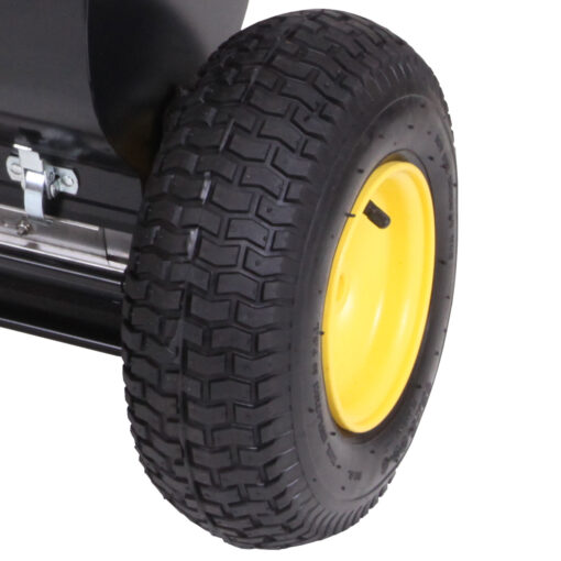Ideal for starting new lawns, this large fertilizer drop spreader puts down seed exactly where you want it. In winter, apply ice melt to sidewalks and driveways all the way to the edge of the pavement without burning the grass or raising the PH of the soil. Large 13” x 5” fully pneumatic tires distribute weight evenly for smooth operation that won’t leave ruts. Comes standard with variable rate and ½” fixed rate bottoms.