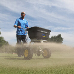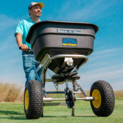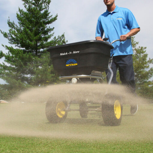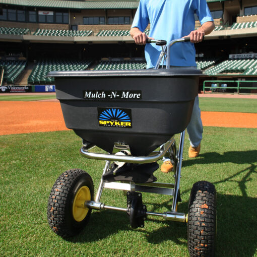 The Spyker Pro-Series S60-12020 Commercial Broadcast Spreader is the right walk-behind spreader for the job. Its large 120 lb. poly hopper lets you cover more ground between fill-ups so you can get more done in less time. Affectionately called the “Mulch-N-More” because of its extra-large single port opening and works with larger materials such as pin mulch and rock salt. We also offer a Top Dressing Kit to protect the gears from the abrasive effects of fine sand.