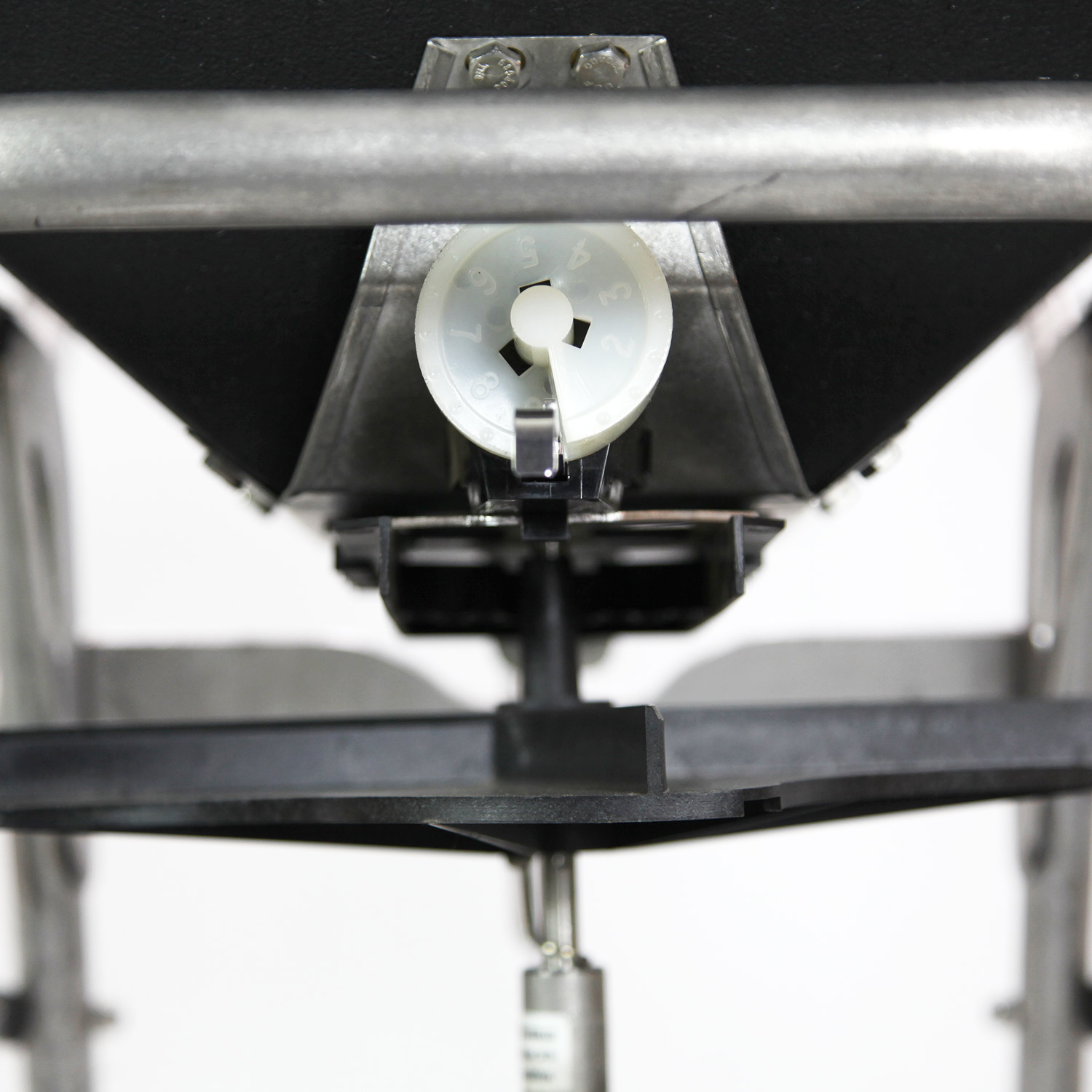 The design of the S60-12020 enables it to project better spread coverage while maintaining perfect equilibrium using the on-the-fly AccuWay™ adjustment cable. The AccuWay™ adjusts the material flow forward or backward, which determines how quickly the granules launch off of the spinner/fan. This allows the operator to maintain a perfectly balanced spread pattern regardless of the chosen material.